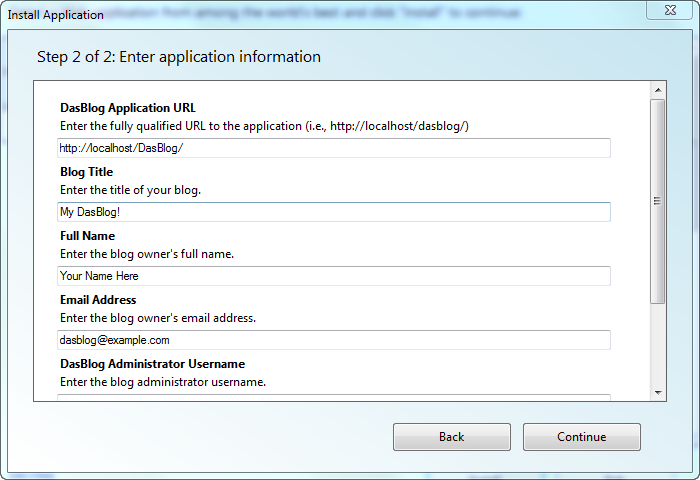 Remember that DasBlog doesn’t use a database, but rather stores all data in XML files in the content folder. Our MSDeploy file sets ACLs on a few directories to allow “Read,Write,Delete.” This file encapsulates a potentially tricky setup step for DasBlog.
